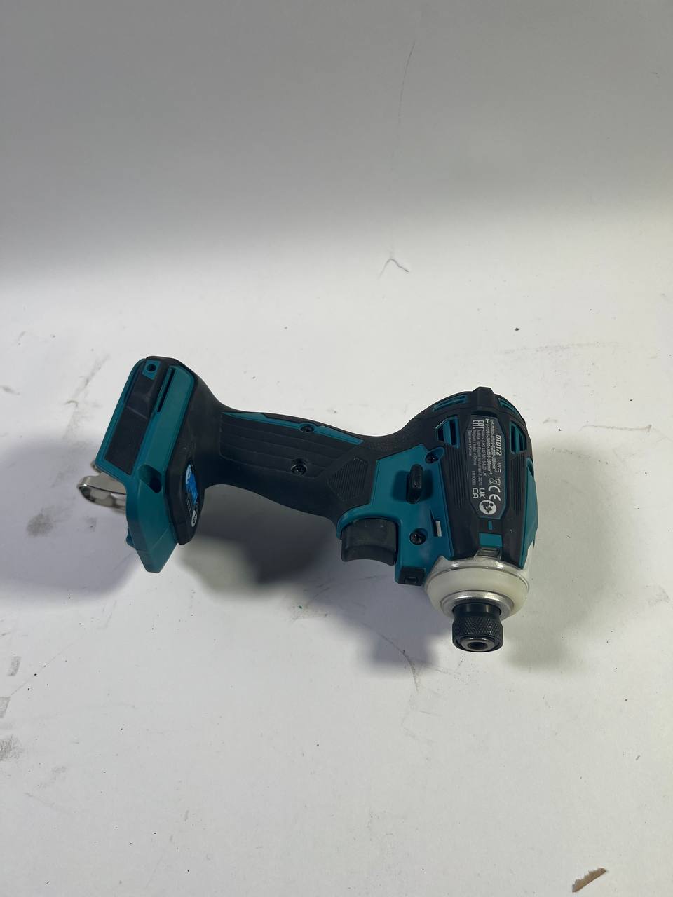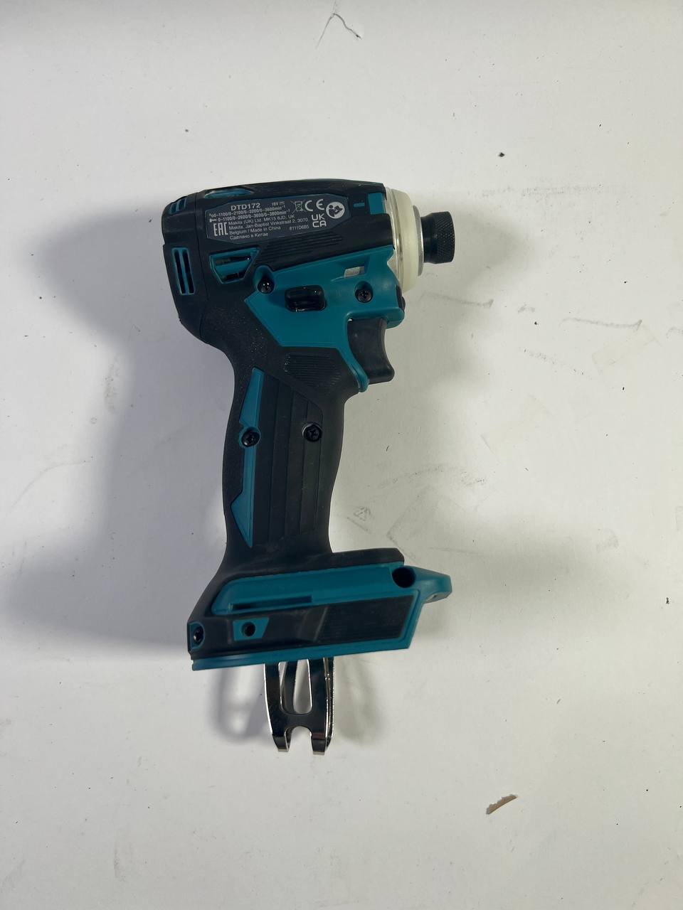 La DTD 172 de Makita es una llave de impacto inalámbrica extremadamente compacta y ligera con un vástago de 1/4". Gracias a su nuevo sistema de montaje de puntas con un solo toque, es especialmente fácil de usar. Con un par de apriete máximo de 180 Nm, es ideal para atornillar de forma rápida y eficaz. Una característica especial de la DTD 172 es la brillante luz de trabajo LED, que no sólo ilumina perfectamente la superficie de trabajo, sino que también puede utilizarse como lámpara de mano. Así siempre tendrá una visión perfecta de su trabajo. Gracias al mango de goma, la llave de impacto se adapta cómodamente a la mano, lo que facilita el trabajo. El nuevo botón de cambio rápido situado justo encima del interruptor permite cambiar rápidamente entre el modo registrado y el modo de aplicación actual. También se ha mejorado el portapuntas. Dos rodamientos de bolas mantienen la broca en su sitio y reducen los molestos bamboleos. El motor sin escobillas de la llave de impacto adapta eficazmente el par y la velocidad a las necesidades cambiantes. Otra ventaja de la DTD 172 de Makita es la protección contra descarga profunda. La herramienta se desconecta automáticamente cuando la batería está casi vacía. Esto garantiza una larga vida útil de la batería.