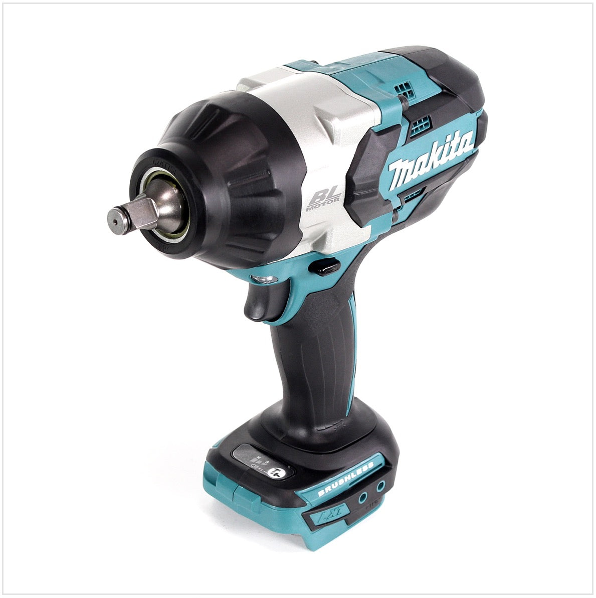 La DTW1002 de Makita es una llave de impacto a batería de 18 voltios con un par de 1000 Nm y velocidad y velocidad de impacto ajustables en 3 pasos. El motor sin escobillas garantiza una mayor resistencia, una vida útil más larga y una carcasa más compacta para poder seguir utilizando eficazmente toda la potencia de la máquina. La llave de impacto impresiona por sus finos detalles técnicos, como el freno electrónico del motor para proteger las muñecas, o la doble luz LED integrada para iluminar el lugar de trabajo. El modelo sucesor de la DTW 450 es un auténtico portento. A diferencia de la DTW1001, este modelo dispone de un portaherramientas de 1/2".