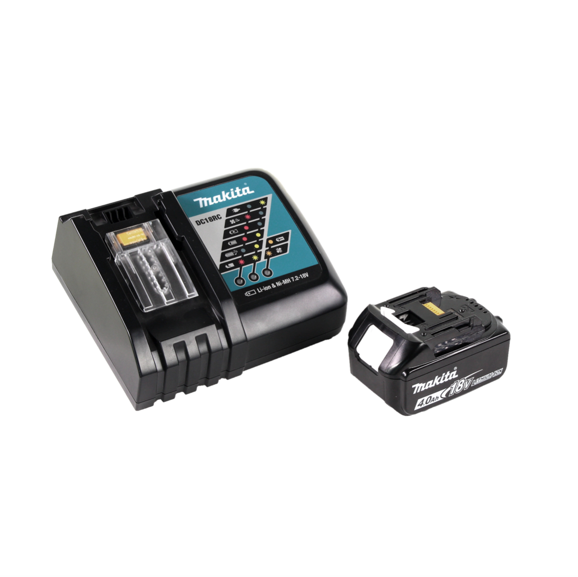 - 1x batería Makita BL1840B 4.0 Ah 18 V con indicador LED de nivel de carga