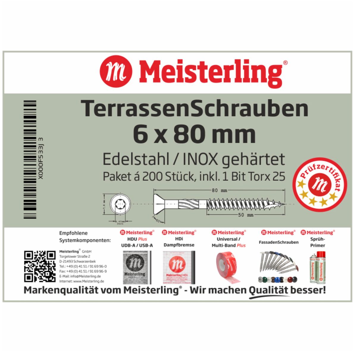 - 1000x tornillos para terraza Meisterling 6 x 80 mm