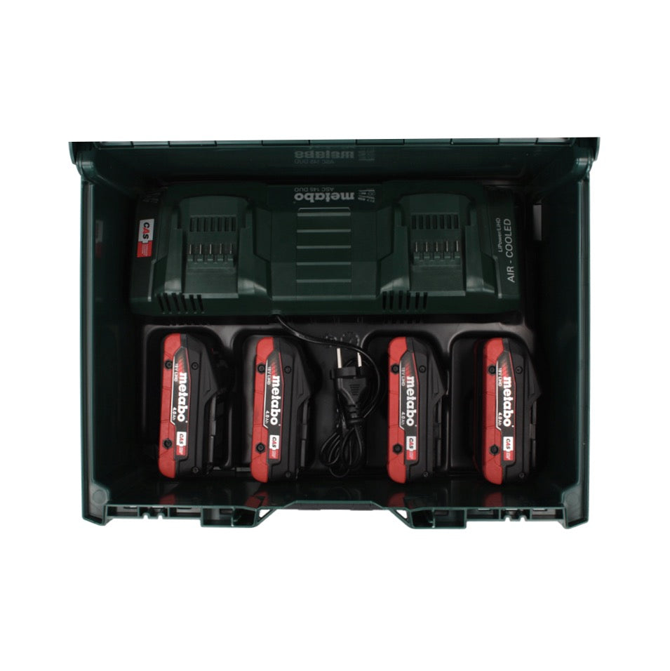 Set básico Metabo 18 V LiHD + 4x baterías 4,0 Ah + cargador ASC 145 DUO + ​​metaBOX