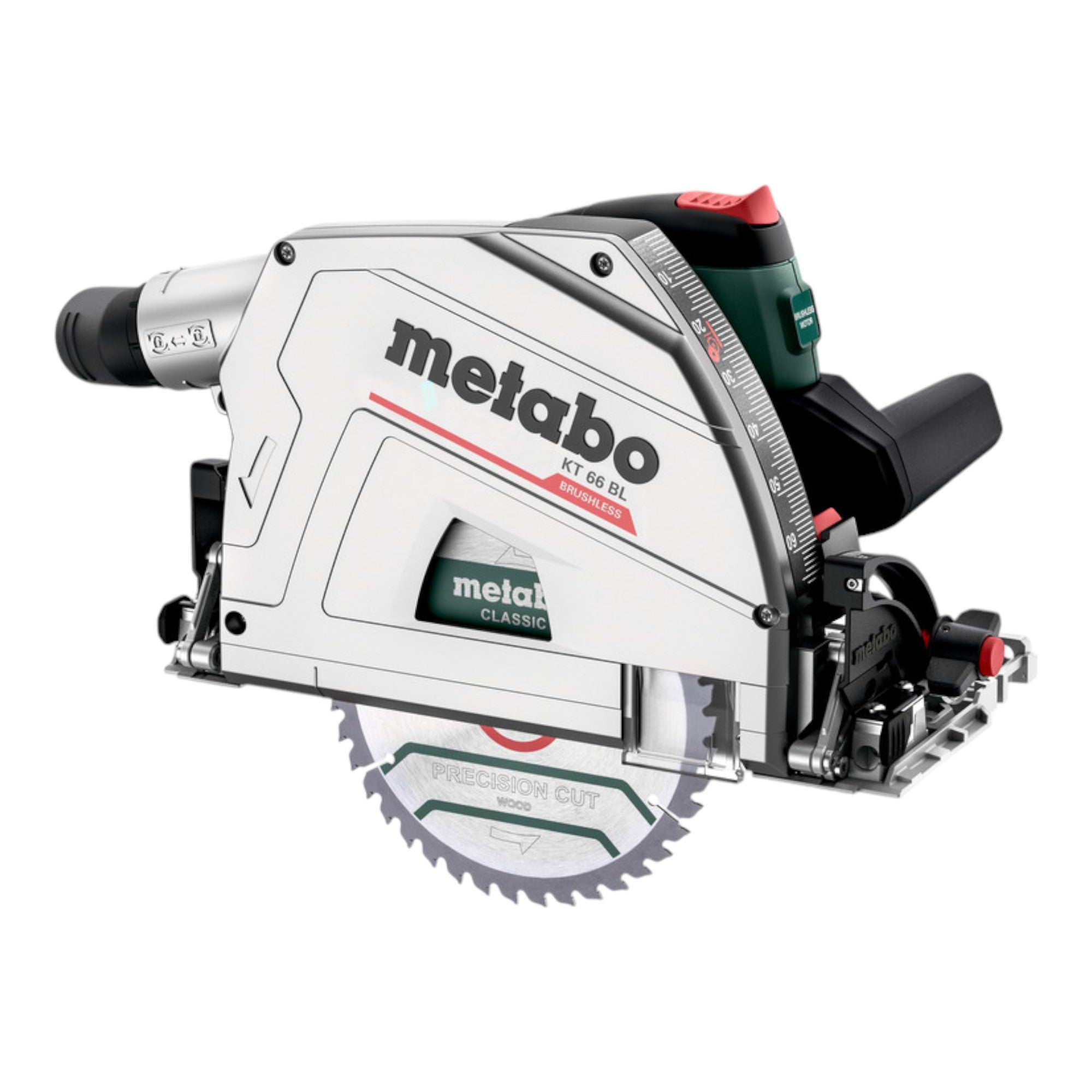 La sierra circular de inmersión KT 66 BL de Metabo es la herramienta ideal para cortes de sierra precisos y potentes de hasta 66 mm de profundidad. Equipada con un motor sin escobillas, ofrece un rendimiento fiable y una larga vida útil. Su ajuste sin holgura sobre carriles guía de Metabo y otros fabricantes garantiza resultados de corte precisos, mientras que la velocidad variable permite la adaptación a diferentes materiales. La función de destalonado y la posición reajustable de 0° y 45° garantizan transiciones precisas y la máxima exactitud de corte. El indicador doble permite ajustar con precisión la profundidad de corte, tanto con carril guía como sin él. Gracias a la ventana de visualización de la cubierta protectora, siempre podrá vigilar el corte, y el freno de marcha en inercia garantiza una seguridad adicional al detener rápidamente la hoja de sierra. El aparato es adecuado para serrar cerca de paredes y permite trabajar con poco polvo gracias a la gran bolsa de polvo o a la conexión de un aspirador. La boca de expulsión de serrín giratoria y bloqueable individualmente aumenta la flexibilidad en cualquier posición de trabajo. El tope del eje y el bloqueo de la posición de inmersión facilitan y agilizan el cambio de la hoja de sierra. Como accesorio está disponible un práctico tope-guía paralelo para que sus resultados de corte sean aún más precisos.