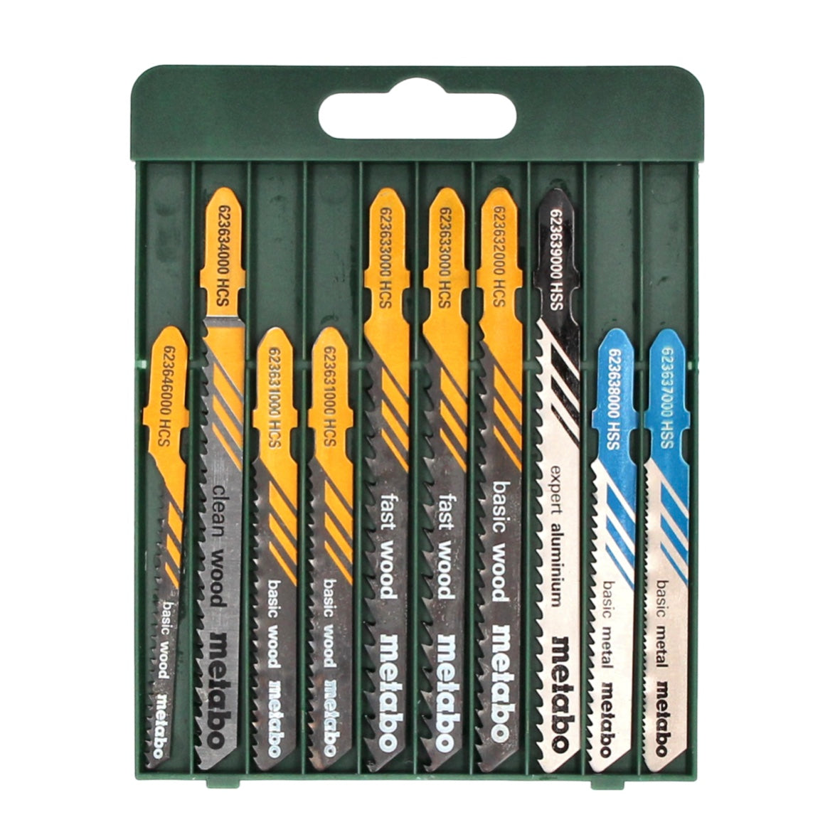 - 1x Juego de hojas de sierra de calar Metabo con eje en T, 10 piezas (623599000) compuesto por: