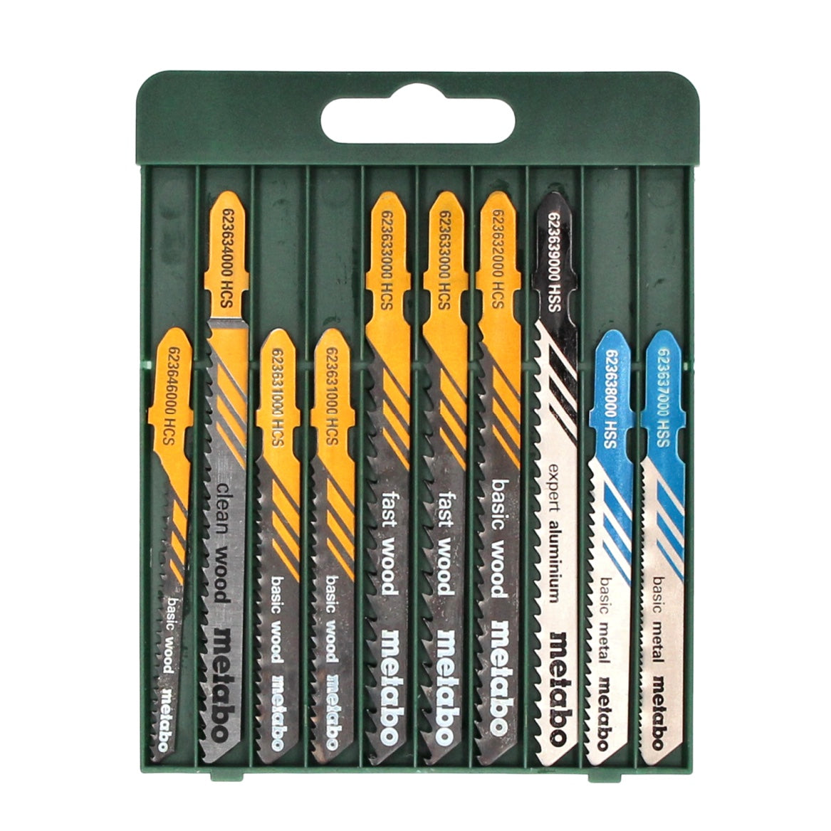 - 1x Juego de hojas de sierra de calar Metabo con eje en T, 10 piezas (623599000) compuesto por: