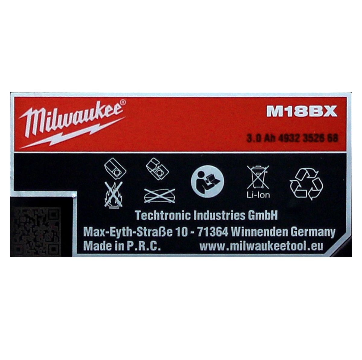 - 2x batería Milwaukee M18 BX B3 18V / 3.0Ah / 3000mAh (4932352668)