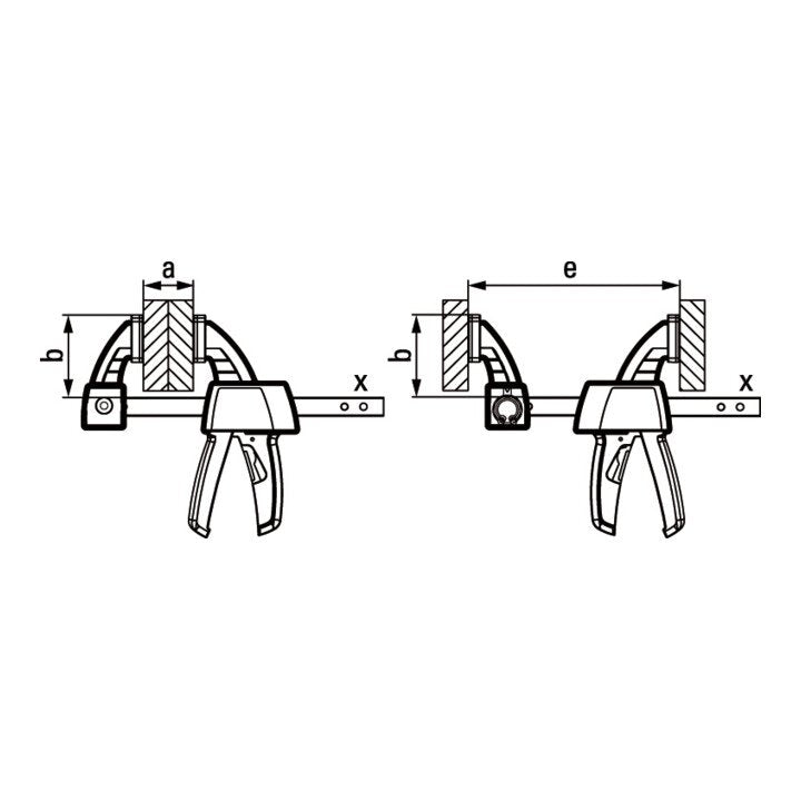para sujetar y separar - con una fuerza de sujeción de hasta 2000 N - se puede reposicionar para separar sin herramientas gracias al mecanismo de desbloqueo inteligente de la parte superior - asa de plástico de 2 componentes moldeada ergonómicamente detrás del riel