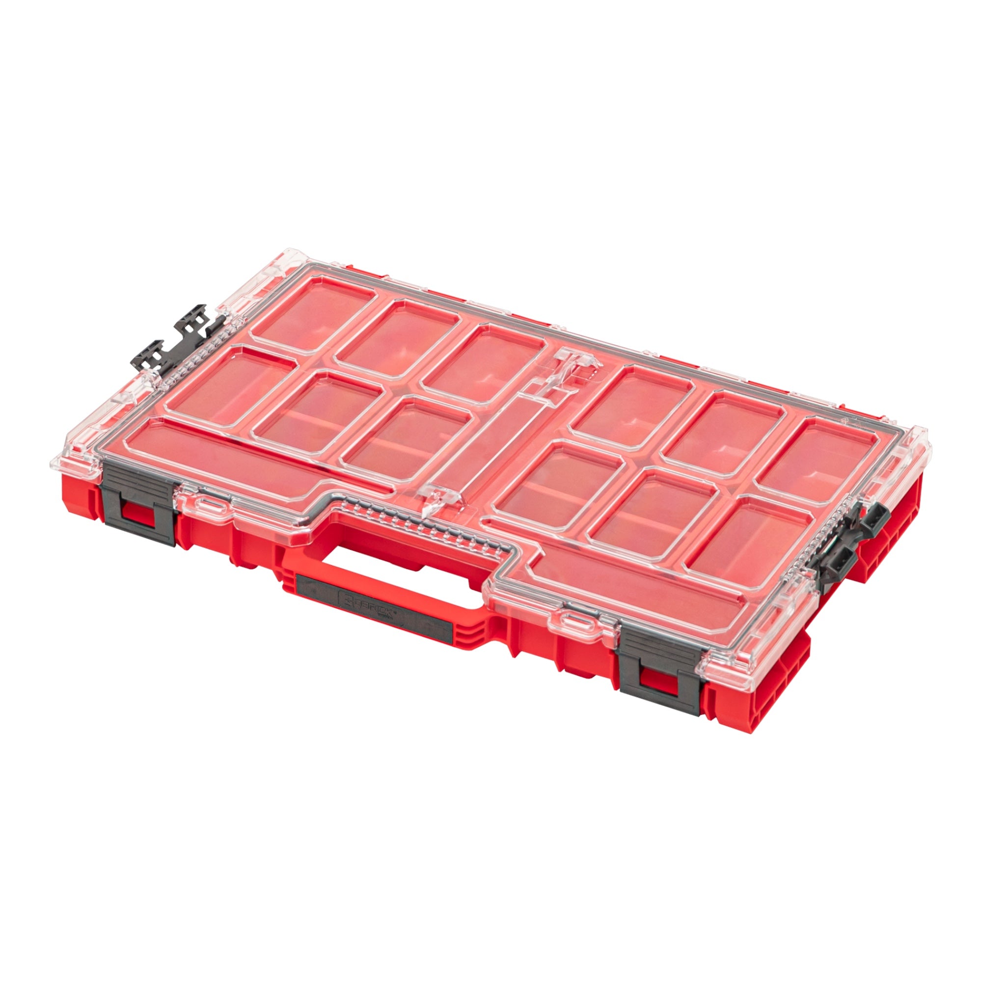 RED ULTRA HD es una edición especial de los productos Qbrick System ONE fabricados con plástico ultrarresistente, que se caracteriza por una excepcional resistencia a los daños mecánicos. Las pruebas de impacto realizadas confirman su excepcional durabilidad, incluso en condiciones por debajo de 0 °C. Qbrick System ONE Organiser L 2.0 RED Ultra HD es una nueva versión aún mejor del organizador de la línea ONE. La versión 2.0 se caracteriza por sus nuevos cierres de poliamida, robustos y fáciles de usar. La tapa del organizador L 2.0 se ha reforzado en los puntos críticos y se ha añadido un faldón adicional alrededor de la junta estándar para ofrecer una mejor protección contra la entrada de polvo y agua. El organizador L 2.0 está equipado de serie con 10 cubos para accesorios más pequeños, incluidos ocho cubos más pequeños y dos cubos alargados para almacenar y transportar objetos más largos en su taller.