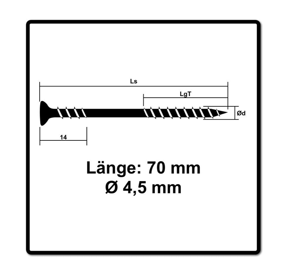 - 1x Tornillo para fachada SPAX 4,5 x 70 mm 100 piezas Acero inoxidable A2 (25470004507022)