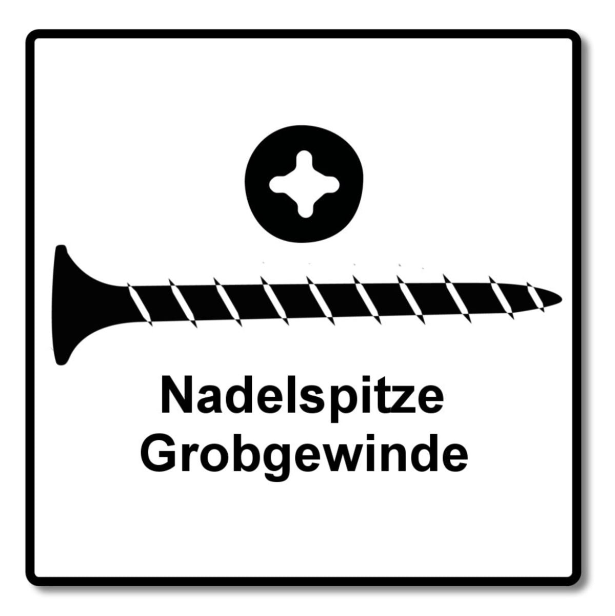- 5000x tornillos para paneles de yeso SPAX GIX-B 3,9 x 55 mm rosca completa cabeza de trompeta ranura en cruz H2 punta de aguja fosfatada