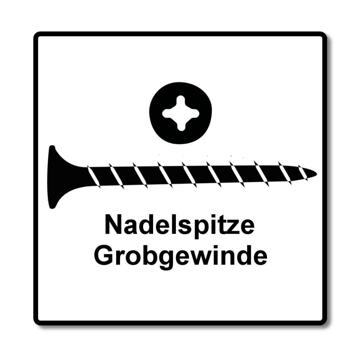 Tornillos para paneles de yeso SPAX GIX-B en cargador, 3,9x55 mm, punta de aguja, 800 piezas (1891170390556) rosca completa, cabeza de trompeta, Phillips H2