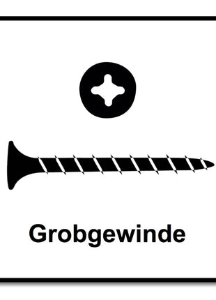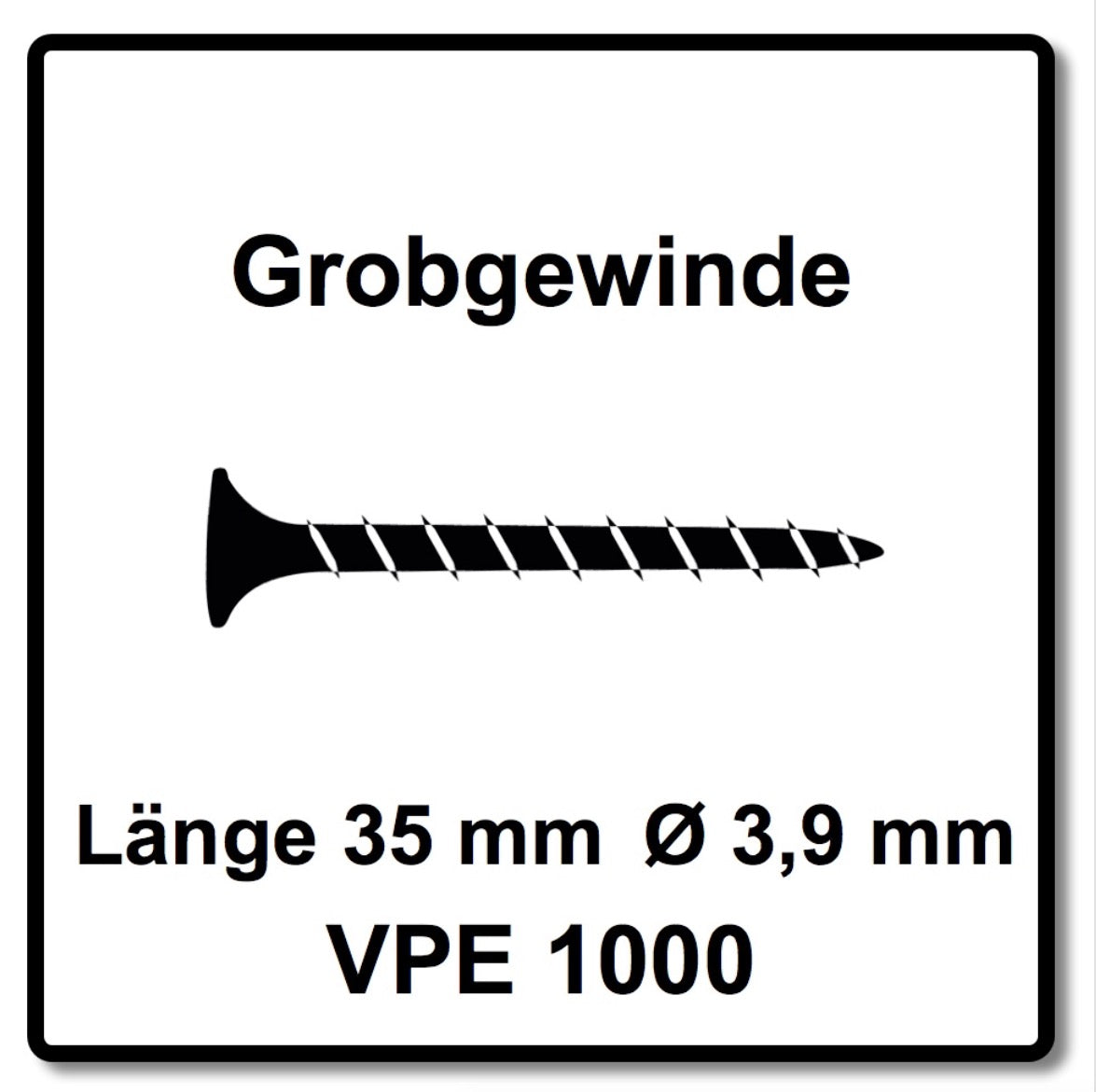 Technofast HBGF3935TE 1000 x tornillos para paneles de yeso tornillos de revista 3,9 x 35 PH2 rosca gruesa