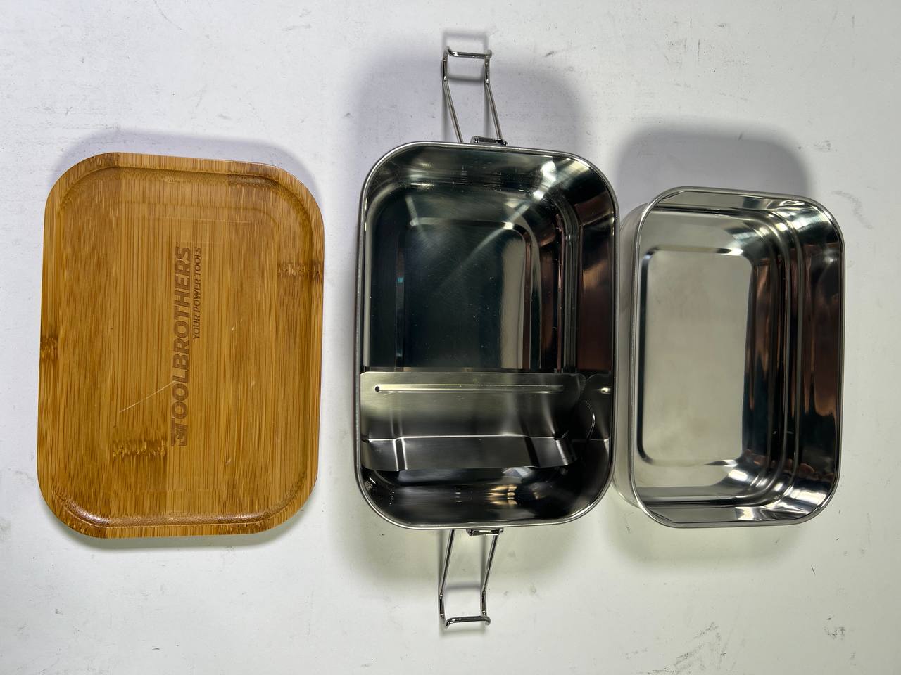 - 1x Toolbrothers Fan panera de acero inoxidable con 2 niveles y tapa de bambú 1340 ml