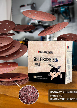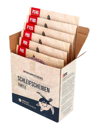 Toolbrothers ya se ha hecho un nombre como portal de comparación de herramientas y ahora lanza una amplia selección de los abrasivos más utilizados en el mercado con su juego de lijado TURTLE. Ya se trate de madera dura o blanda, chapa de madera, piedra, pintura, aluminio, acero o de eliminar óxido del acero, existe un abrasivo adecuado para su lijadora orbital aleatoria para muchas aplicaciones. El recubrimiento de óxido de aluminio de alta calidad garantiza que los discos de lijado sean extremadamente robustos y que se mantengan estables incluso durante los trabajos de lijado más largos. Gracias al soporte de velcro reforzado con tejido, el papel de lija se adhiere con especial firmeza al disco de lijado de la lijadora rotorbital. Para que el resultado del lijado sea especialmente bueno y aumente la durabilidad de los discos de lijado, éstos se han dotado de 8 orificios que garantizan una aspiración del polvo especialmente óptima. Los discos de lija de 150 mm de Toolbrothers le ofrecen una alternativa más económica pero de alta calidad a los productos de marca más caros.