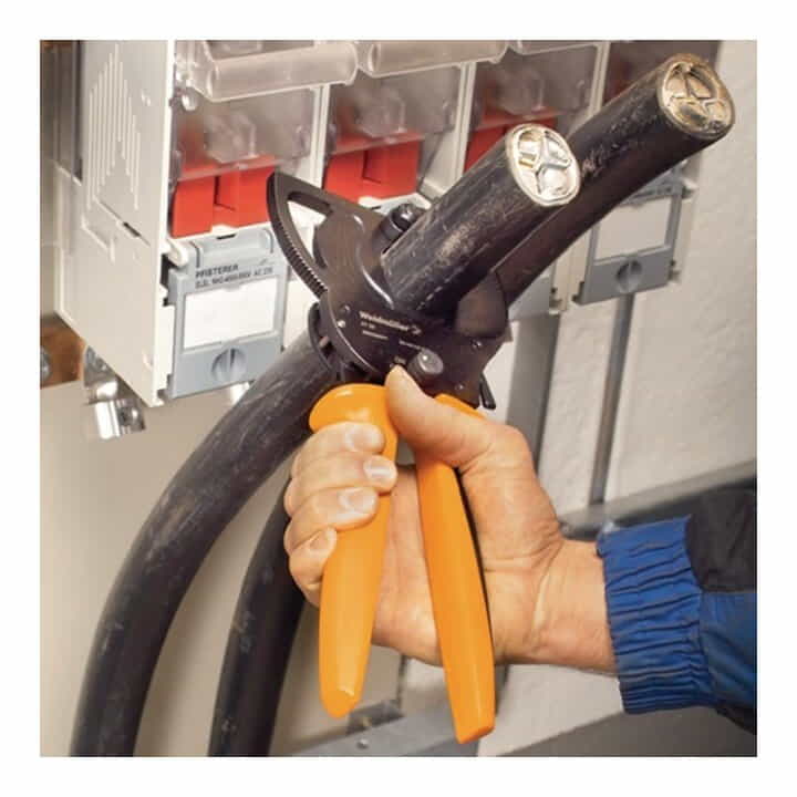 no apto para alambres de acero, cables reforzados con acero, aleaciones de aluminio y conductores de cobre trefilados · cables de datos/teléfonos/de control, Ø exterior máx. 55 mm potencia de corte máxima cable de cobre: ​​trenzado: sección del conductor máx. / 1000 kcmil · de hilo fino: sección del conductor máx. 500 mm² /1000 kcmil · de hilo fino, multifilar. Ø máx. = 55 mm · Cable sectorial = 3 x 150 SM · máximo rendimiento de corte Cable de aluminio: trenzado Sección del conductor máx = 500 mm² / 1000 kcmil · trenzado Ø máx. = 55 mm · Cable sectorial = 3 x 150 SM · Cuchillas giratorias de repuesto disponibles