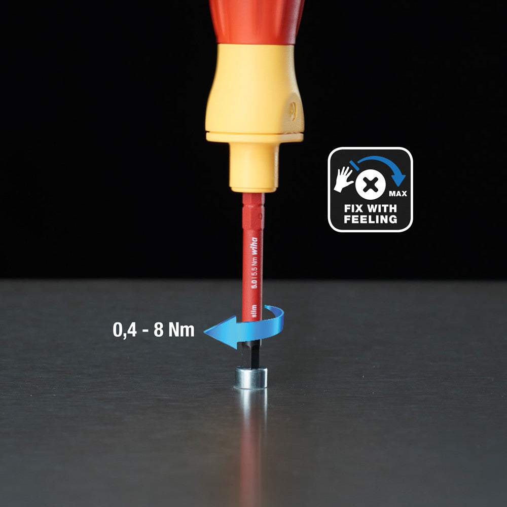 El destornillador proporciona un soporte de tornillo electrónico, lo que libera al usuario del agotador atornillado, pero al mismo tiempo deja al usuario el apriete manual y suave. El speedE® gira el tornillo con hasta 0,4 Nm. Sin embargo, esta fuerza puede aumentarse manualmente hasta 8 Nm y limitarse gradualmente con los adaptadores easyTorque. La nueva tecnología duplica la velocidad de atornillado. Las funciones de protección del material garantizan el control total de la fuerza de apriete a pesar de la alta velocidad de apriete. Además, se ha instalado un potente LED que ilumina suficientemente la zona de trabajo directa. El destornillador ha sido probado por VDE y es adecuado para trabajos de hasta 1.000 voltios. Se pueden realizar sin problemas hasta 800 atornillamientos por carga de batería. El speedE® es especialmente adecuado para tornillos roscados y procesos de atornillado sensibles.